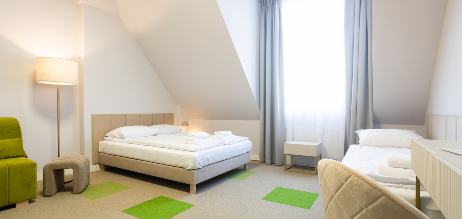 Pokój dwuosobowy typu Superior wyposażony jest w dwa oddzielne łóżka typu twin oraz prywatną łazienkę z prysznicem i suszarką do włosów. Do dyspozycji Gości jest zestaw do par...