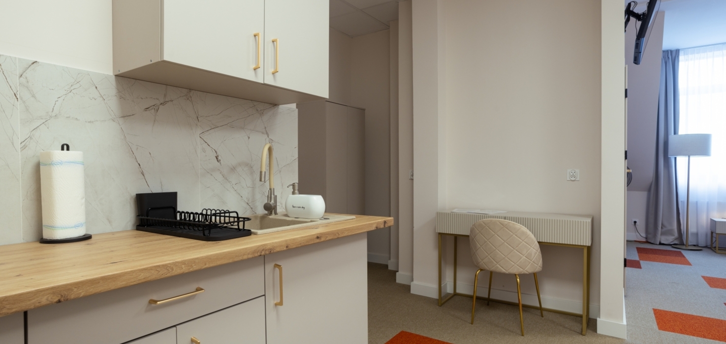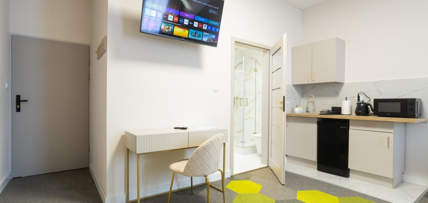 Ten apartament składa się z 1 sypialni, aneksu kuchennego oraz 1 łazienki z prysznicem i suszarką do włosów. Aneks kuchenny wyposażony jest w przybory kuchenne, które umożliwi...