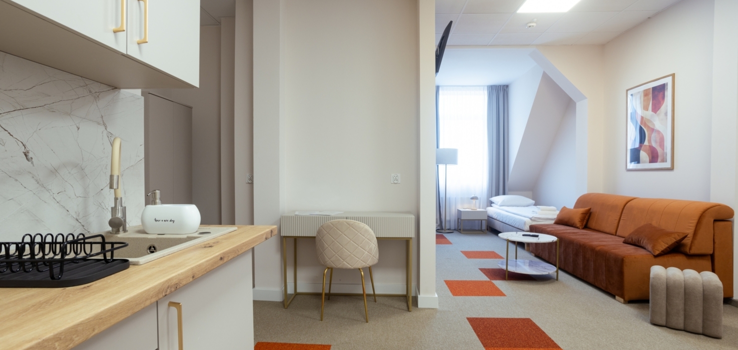 Ten apartament składa się z 1 sypialni, aneksu kuchennego oraz 1 łazienki z prysznicem i suszarką do włosów. Aneks kuchenny wyposażony w przybory kuchenne umożliwia gotowanie ...